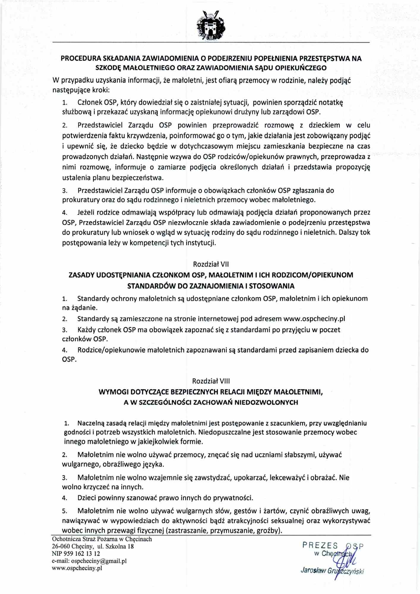 Standardy Ochrony Małoletnich OSP Chęciny